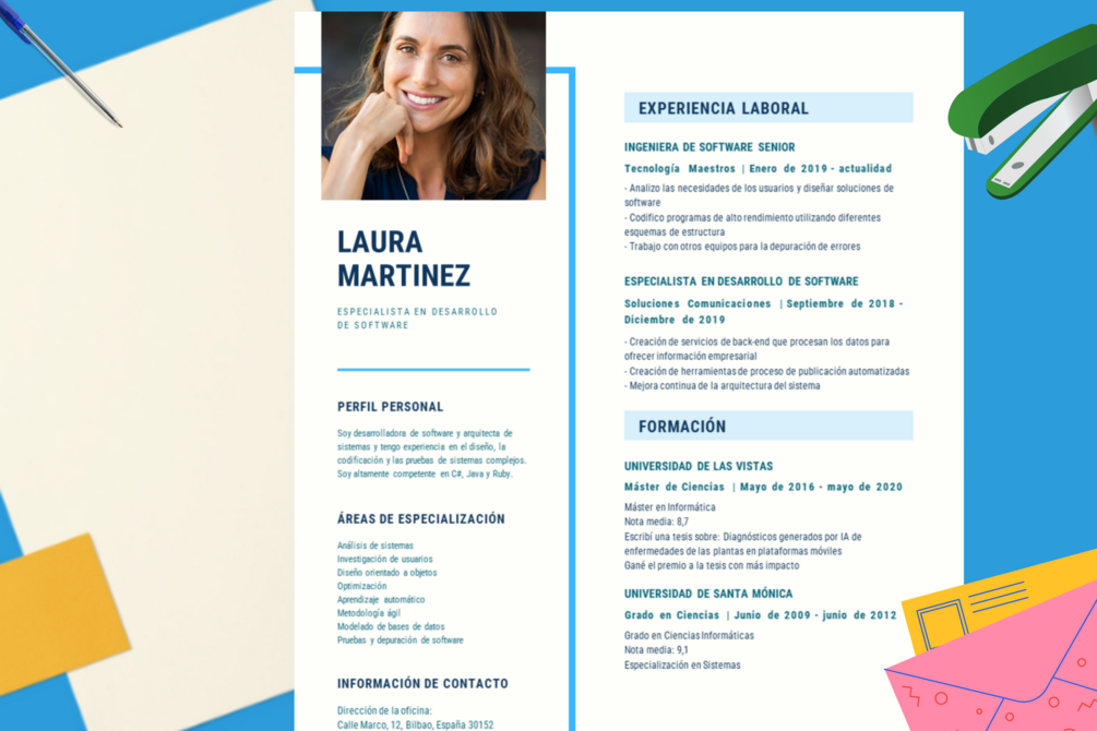 Destaca sobre los demás en las entrevistas de trabajo y procesos selectivos con esta plantilla Premium de aspecto espectacular y moderno como Especialista en Desarrollo de Software.